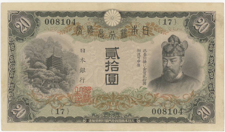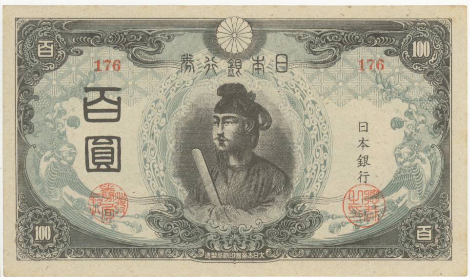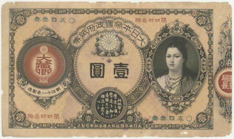 583番 神功皇后1円 第四四参号 上下ホツレ 穴 シミ |