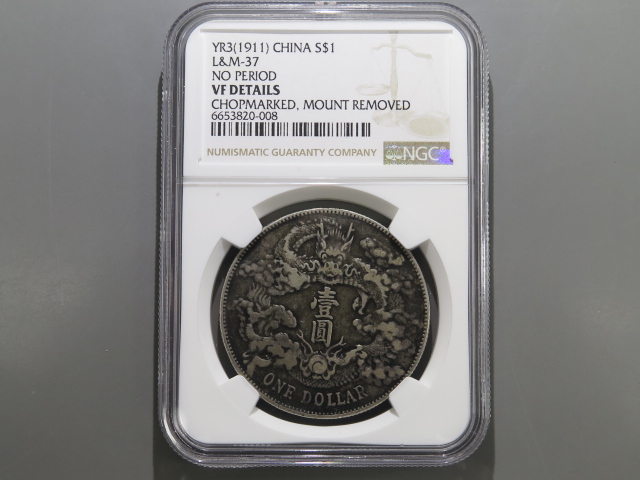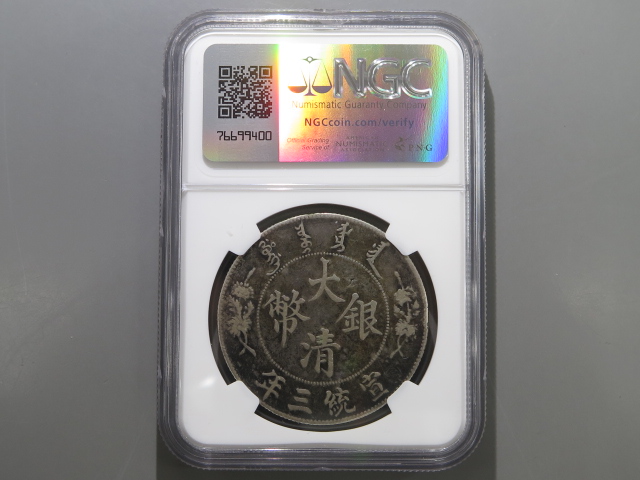 637番 銀幣 大清銀幣 1円 宣統3年 荘印2 NGC VF DETAILS |