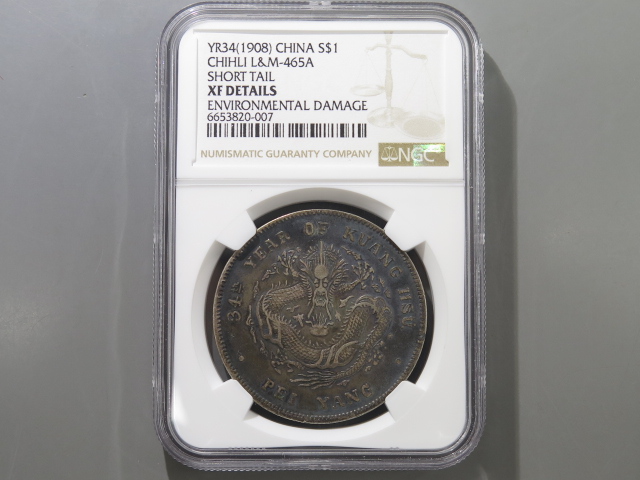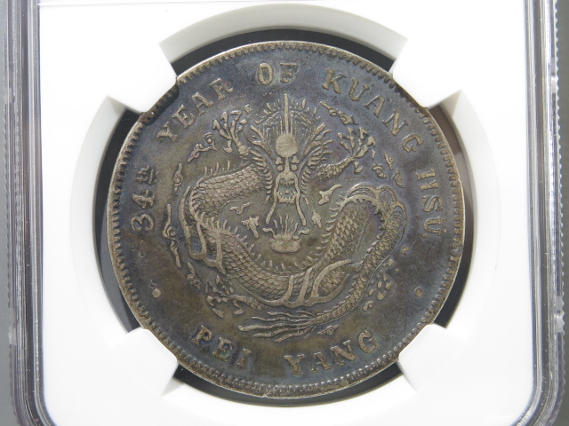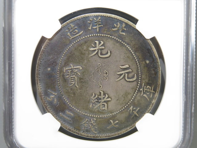| 638番 銀幣 光緒元宝 北洋造 7銭2分 小ヤケ NGC XF DETAILS |