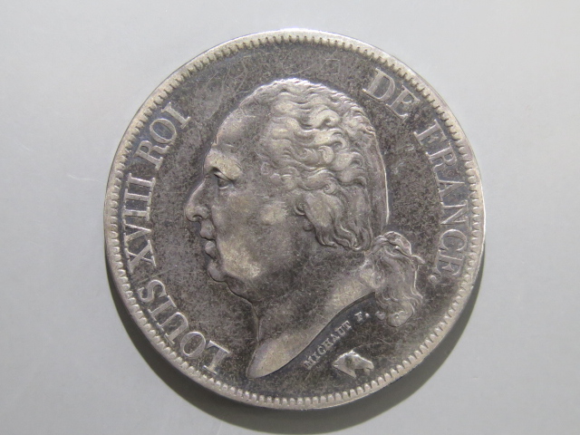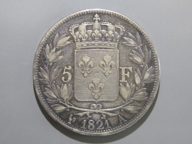 | 714番 フランス ルイ18世 5フラン銀 1821 トーン |