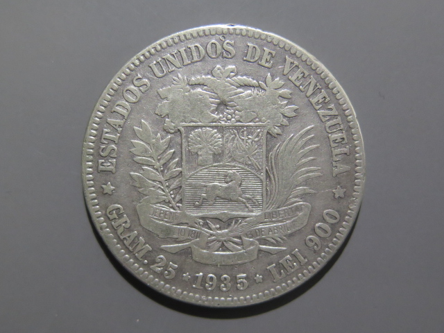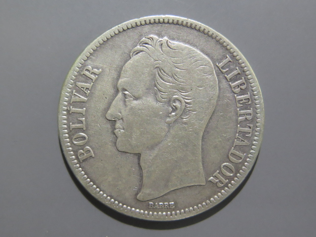 719番 ベネズエラ 5ボリバル銀 900レイ 1935 |